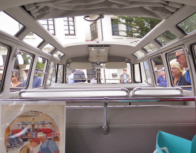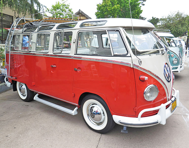 The 23-window Volkswagen Samba Bus was originally marketed for touring the Swiss Alps. The windows made it ideal for viewing the Mountains. Over time these busses have become very sought after collector cars commanding high prices. Many include “Safari Windows” (opening windshields) and a large retractable ragtop sunroof.