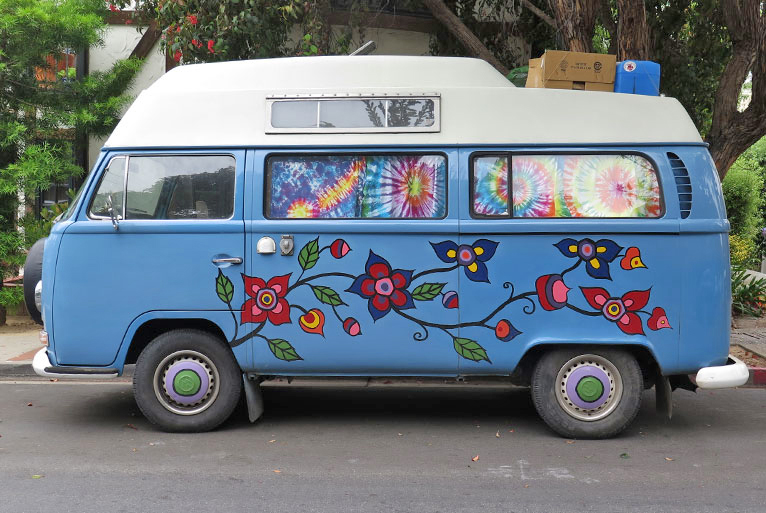 Who can forget the Volkswagen Bus as an iconic symbol of the 60’s Peace and Love movement. Their utilitarian flexibility mad them perfect for the hippy lifestyle and the need to be much more that a bus, a canvas for artistic expression.